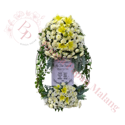 Standing flower Kreasindo Florist Malang, rangkaian bunga berdiri elegan untuk peresmian, ucapan duka cita, dan acara formal berkesan.