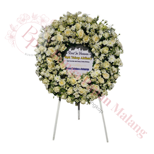 Standing flower Kreasindo Florist Malang, rangkaian bunga berdiri elegan untuk peresmian, ucapan duka cita, dan acara formal berkesan.